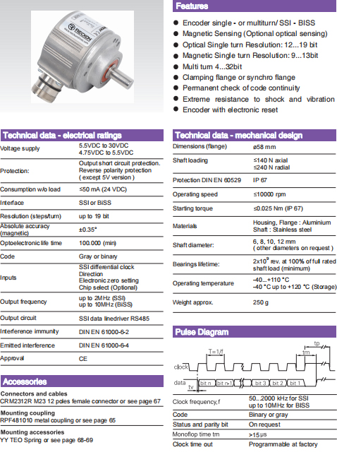 | ○ | 空載電流:≤ 50mA(24VDC) | ○ | 接口:SSI或 BiSS | |||
